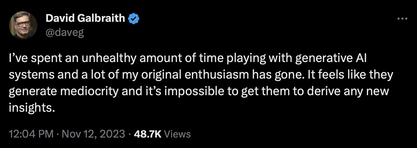 Greetings from a surprisingly sunny Lisbon where AI is the main subject on the agenda of WebSummit. I’m here to hang out with the Envisioning team and other friends and collaborators while keeping an eye on opinions and developments around generative AI.