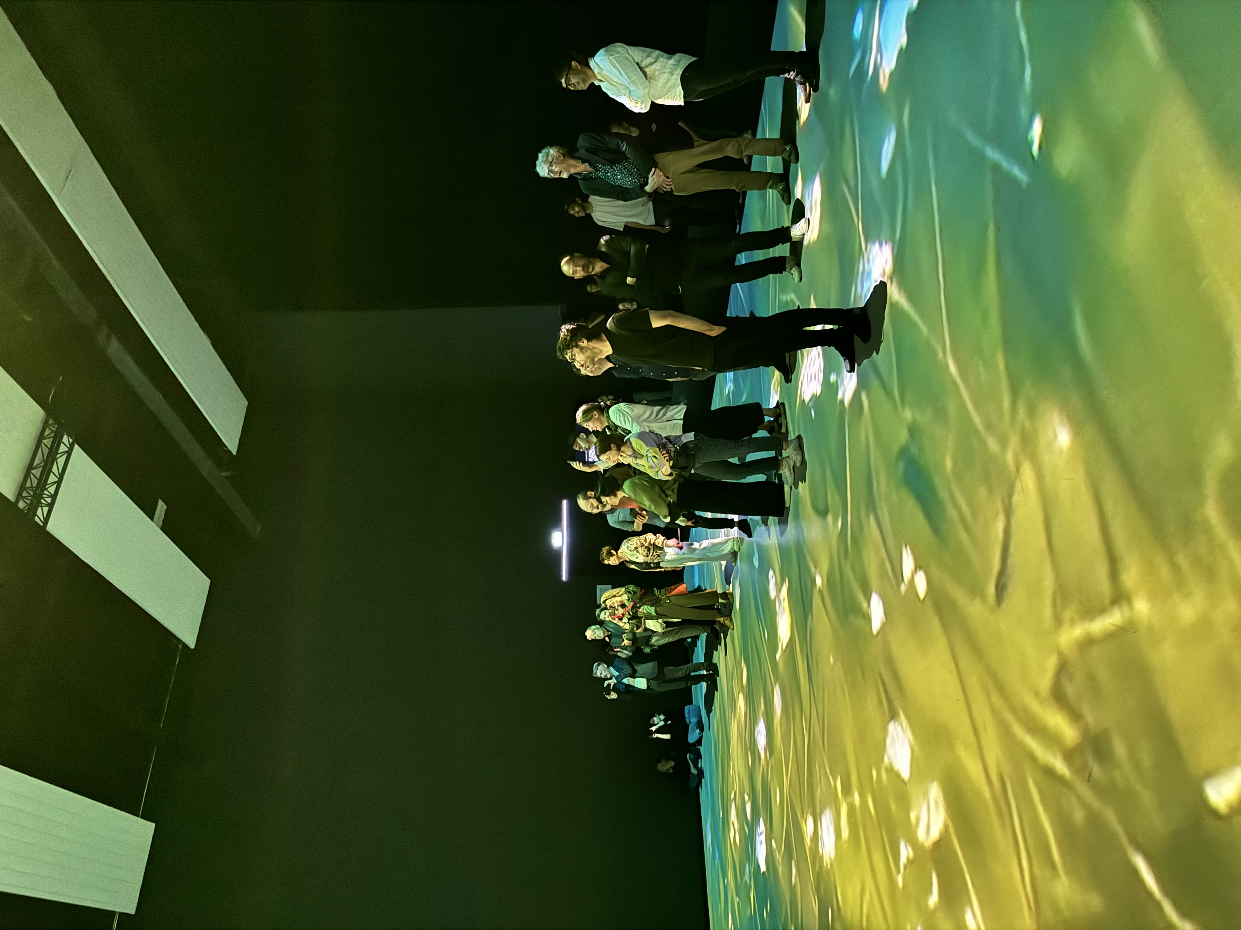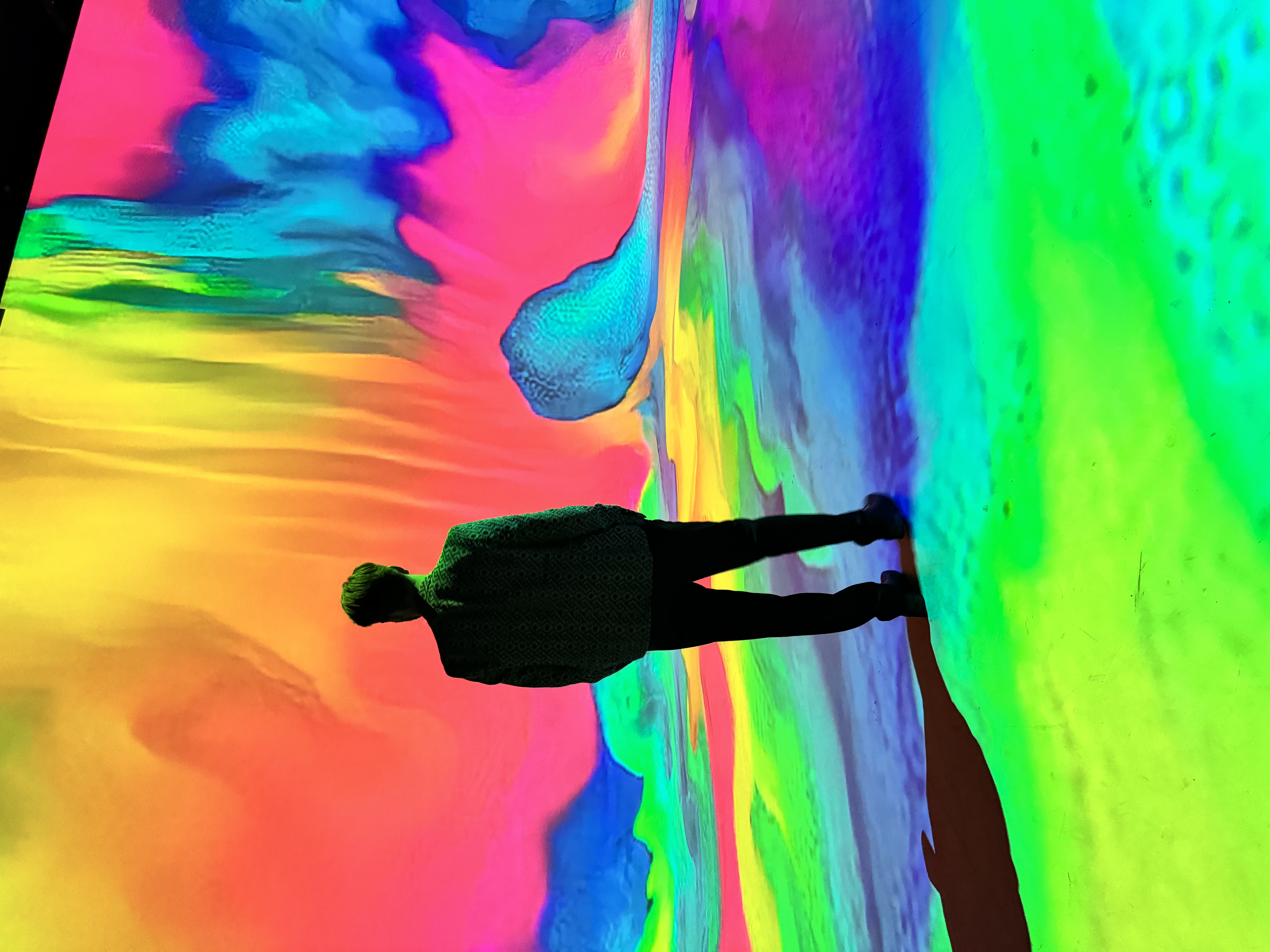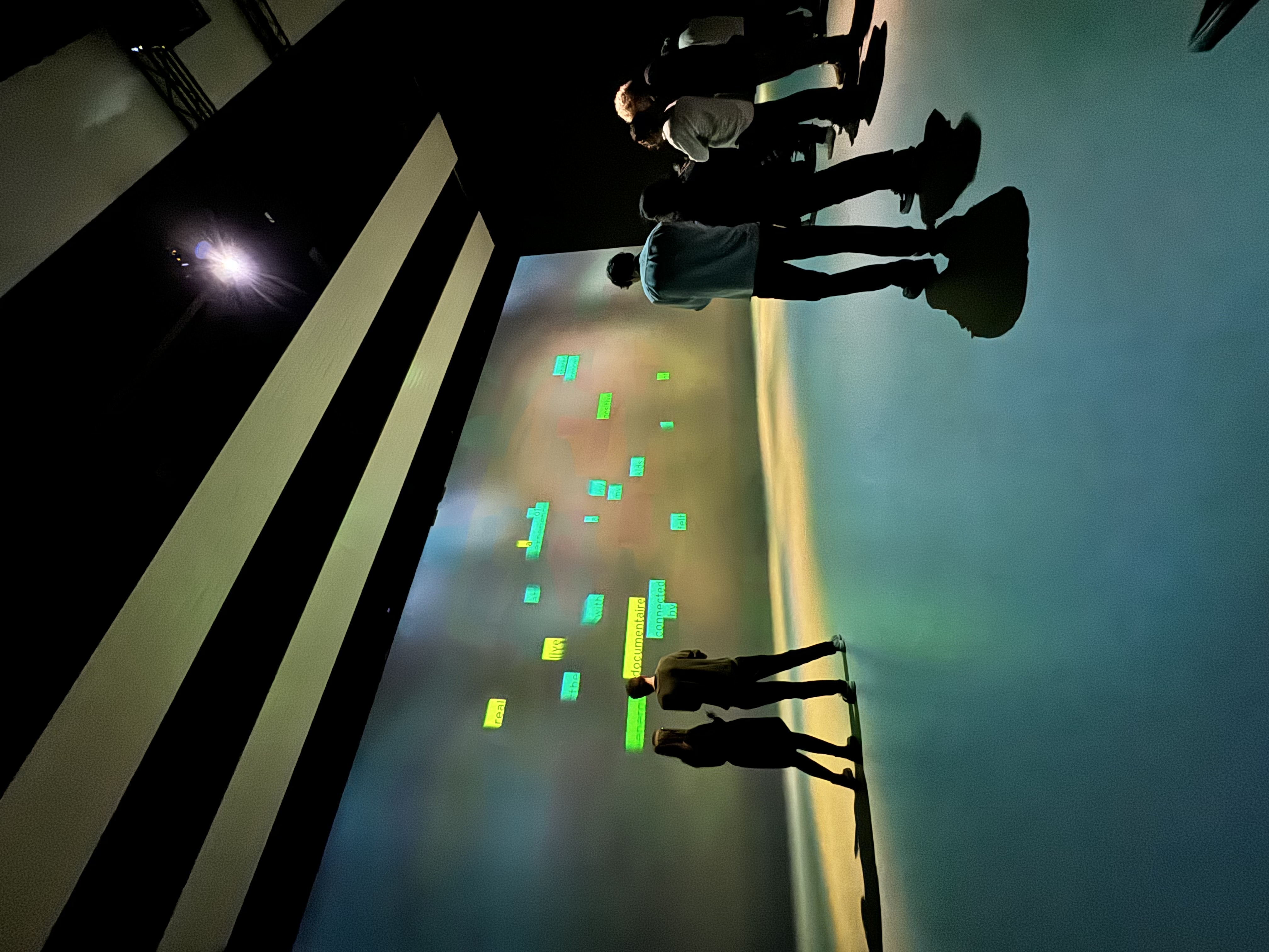 We were asked to log in to the museum’s Wi-Fi and access a web app via QR code, and each used our phones throughout the process. The bulk of the experience revolved around interacting with “SAM”, a generative intelligence which chatted with each participant individually and collated their inputs into a collective output throughout the hour we spent together. First by representing our inputs as a floating tag cloud, and then with a generative video clip and story narrated by SAM which incorporated snippets and aspects of our different stories into its grand narrative.
