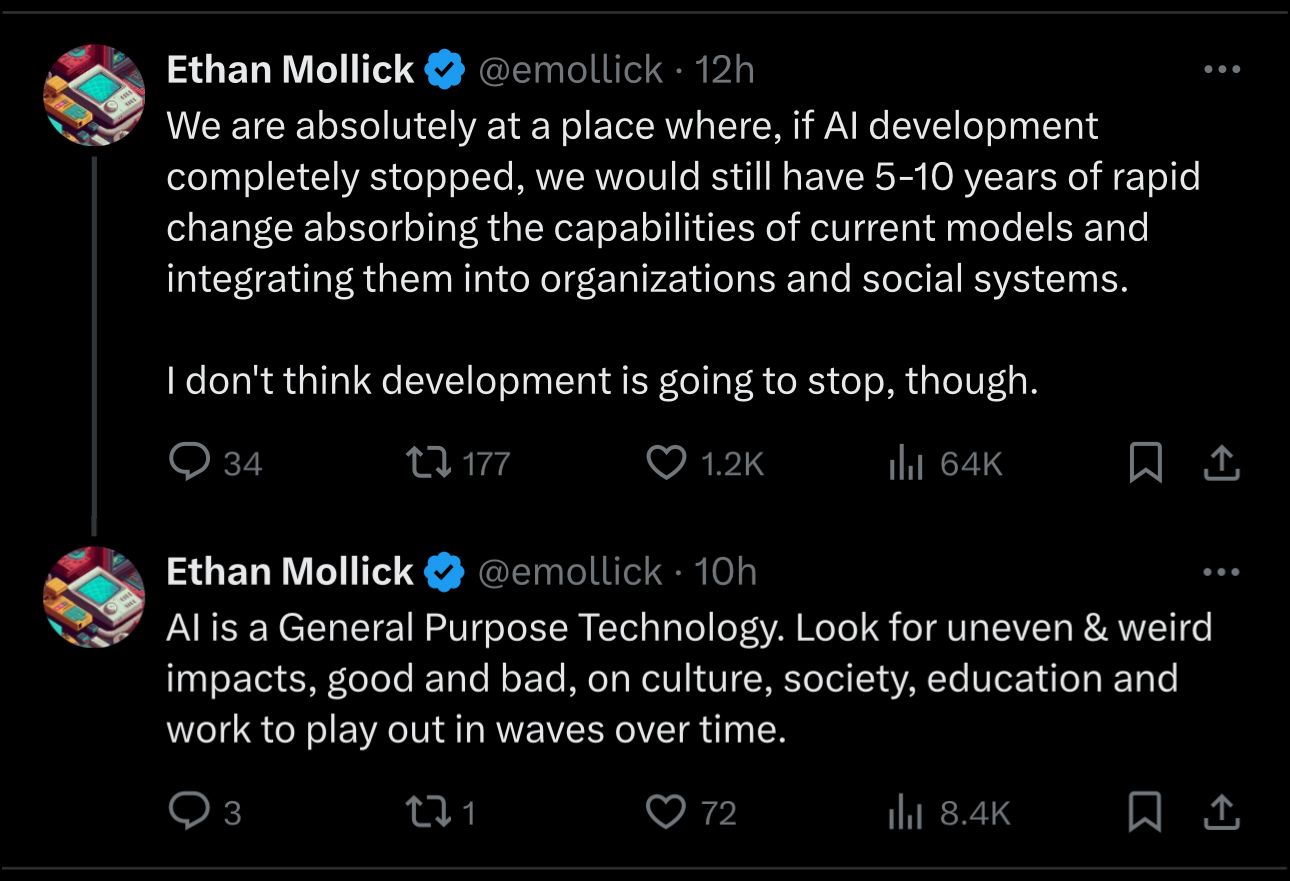 There are a few ways out of this plausible dystopia. Being more knowledgeable about what is happening in AI and how to harness some of these effects feels like the right first step, which is something you and I both have in common. The next step is doing something about it: using it daily, teaching others about it or hacking together an AI scratch for a personal itch – doing anything and furthering your interest and skills is likely to help you thrive, and hopefully allow others to grow together.