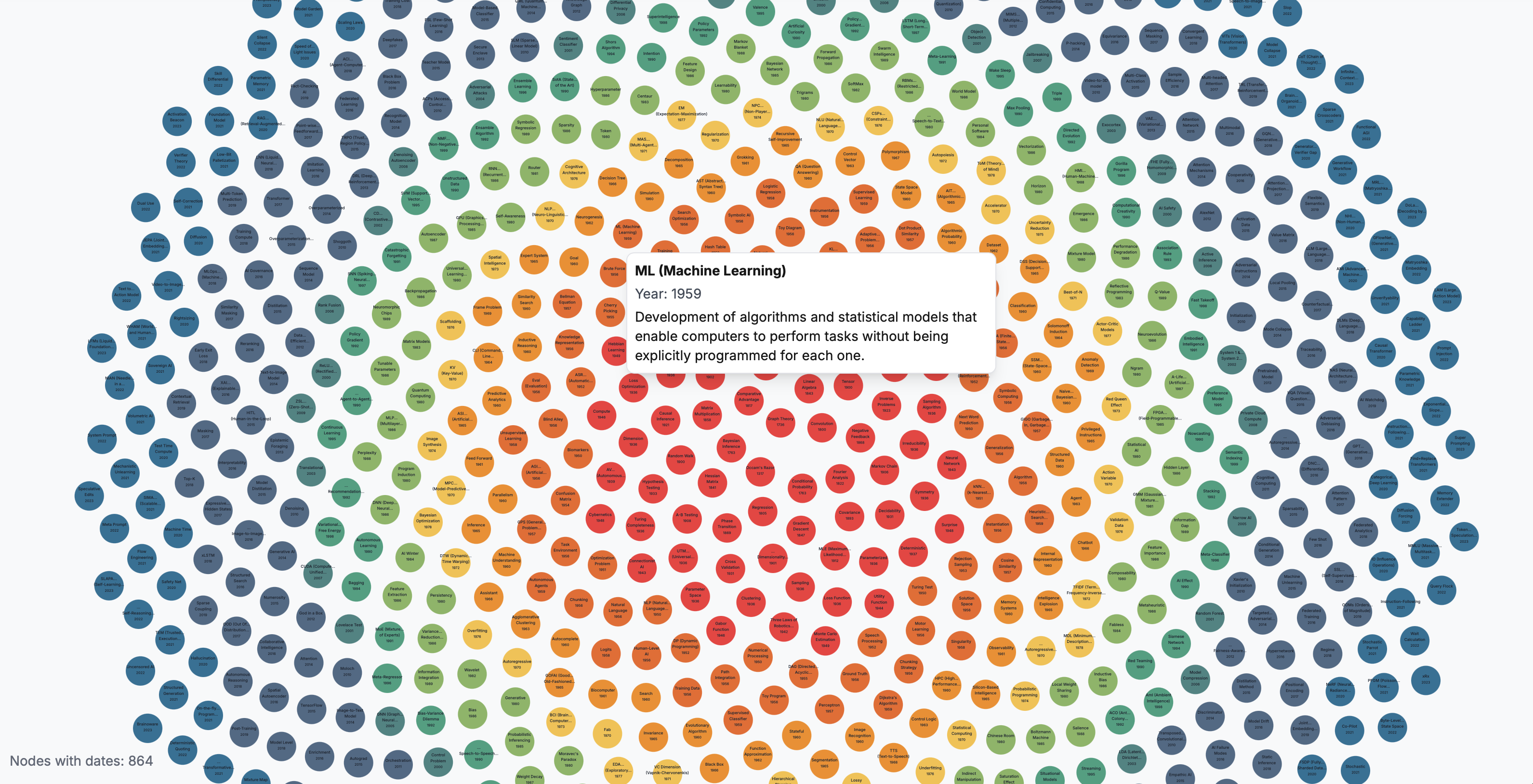 We are also experimenting with a timeline view in the shape of a sunflower. I asked GPT to determine the year of invention for each of the terms, and have used this data to order the entries by age. Check it out: envisioning.io/vocab/timeline/