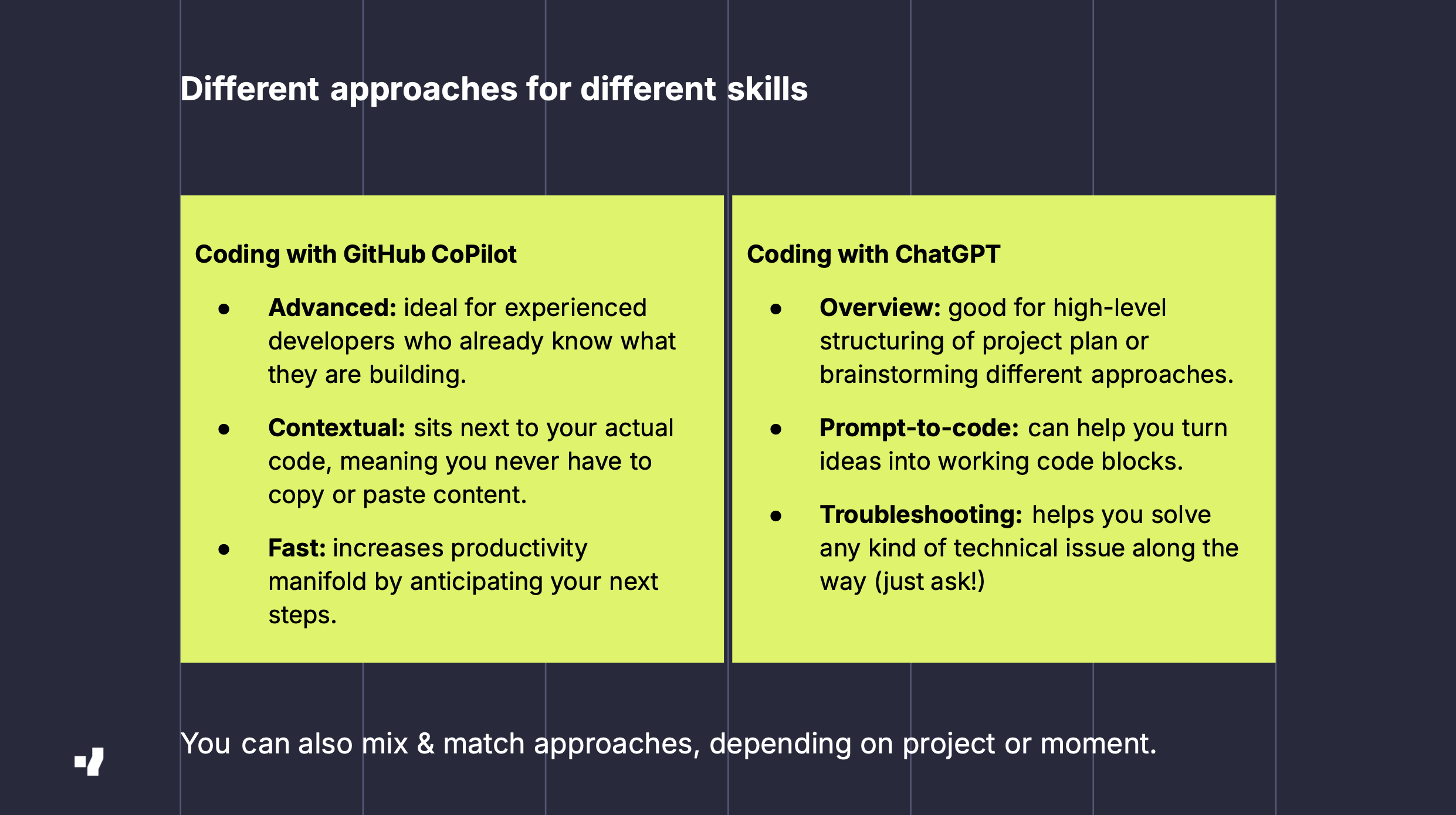 I never had the patience to code. Despite multiple teaching attempts by my engineer father, my own level of ambition never matched my actual ability to implement what I would like, which often left me frustrated and unmotivated to deepen my own software development skills. In practice, this left me comfortable speaking the language of coders while having next to no ability to implement what was discussed – which is an ideal position when considering our newfound ability to talk machines into doing our biddings.