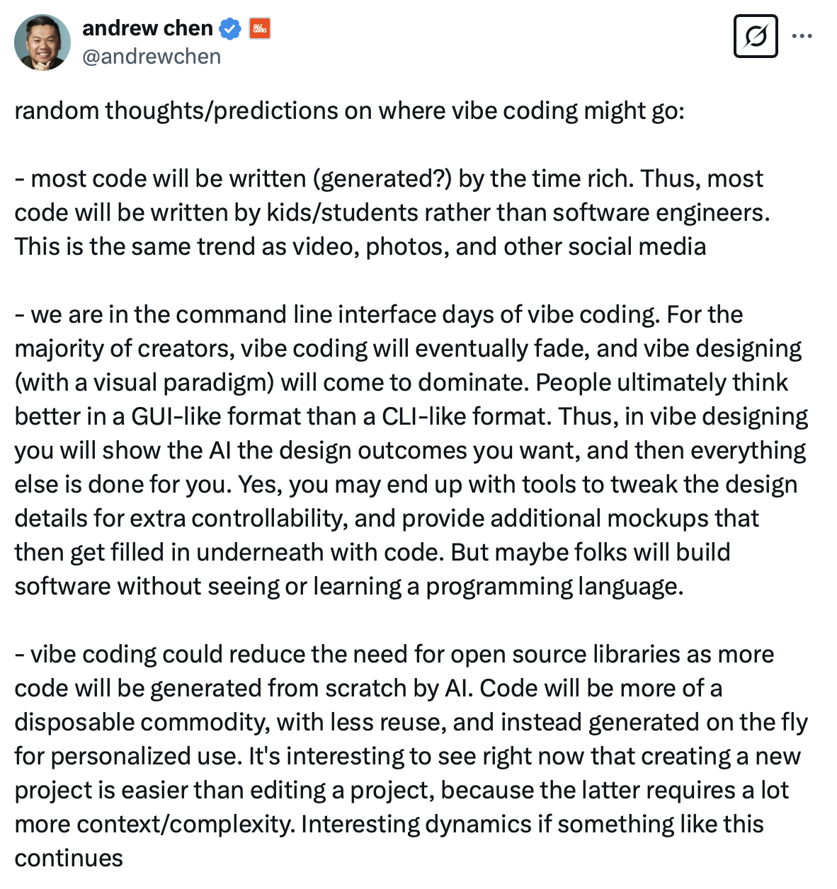 Regardless, I’ve learned to spend most of my workdays vibe coding solutions to my own business problems and personal interests. The sense of agency that comes from building software—the very environment where most of us spend our days—is staggering. You no longer need to be a good programmer to create things, which still blows my mind.