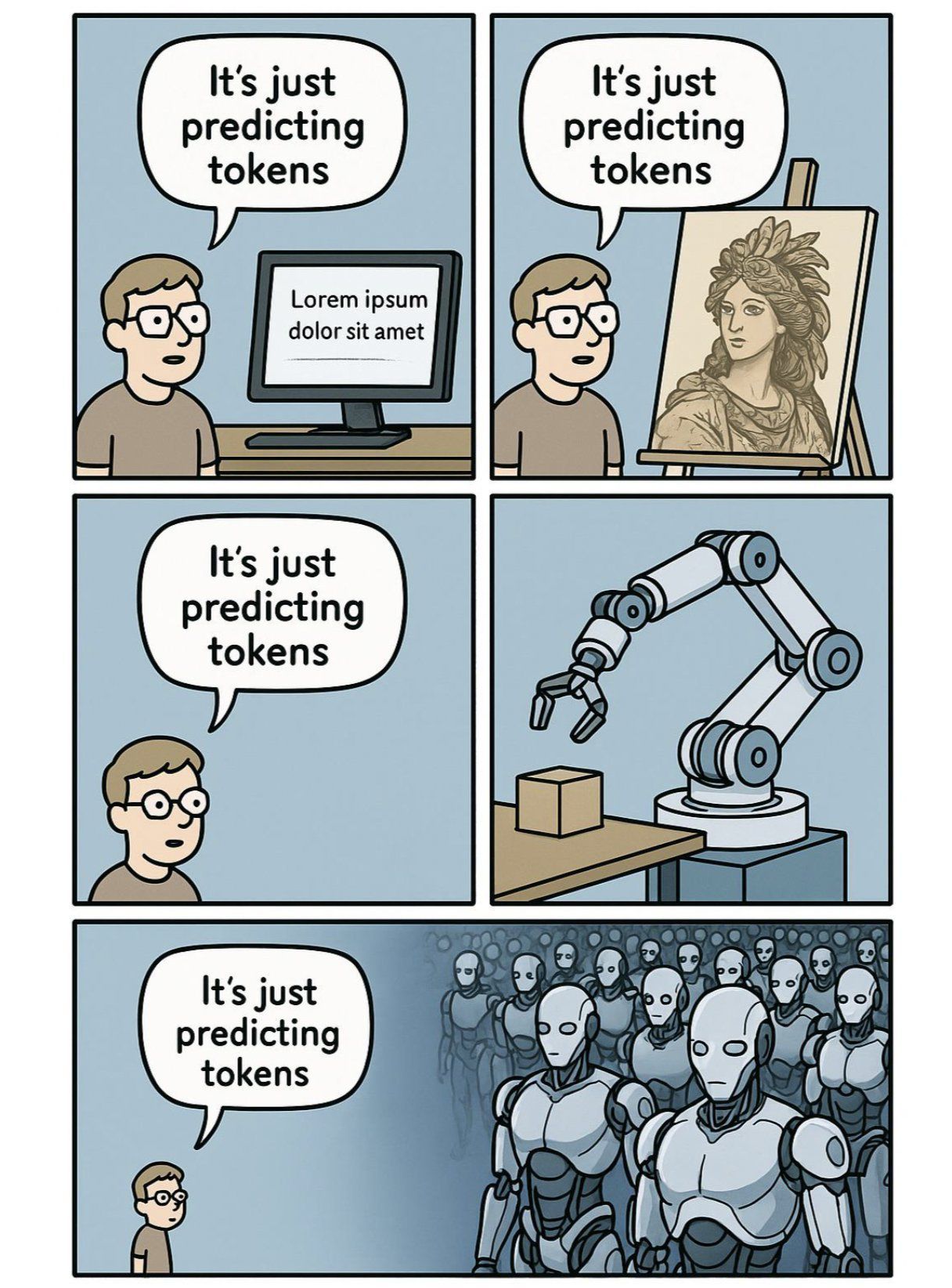 It seems to me right now you could do like a double blind test of the same prompt given to Grock, Claude, Gemini, Mistral, Deep Seek. I bet most people wouldn't be able to tell which is which.