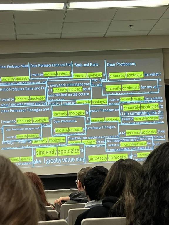 From Reddit, apparently showing the messages a teacher received from students caught using GPT.