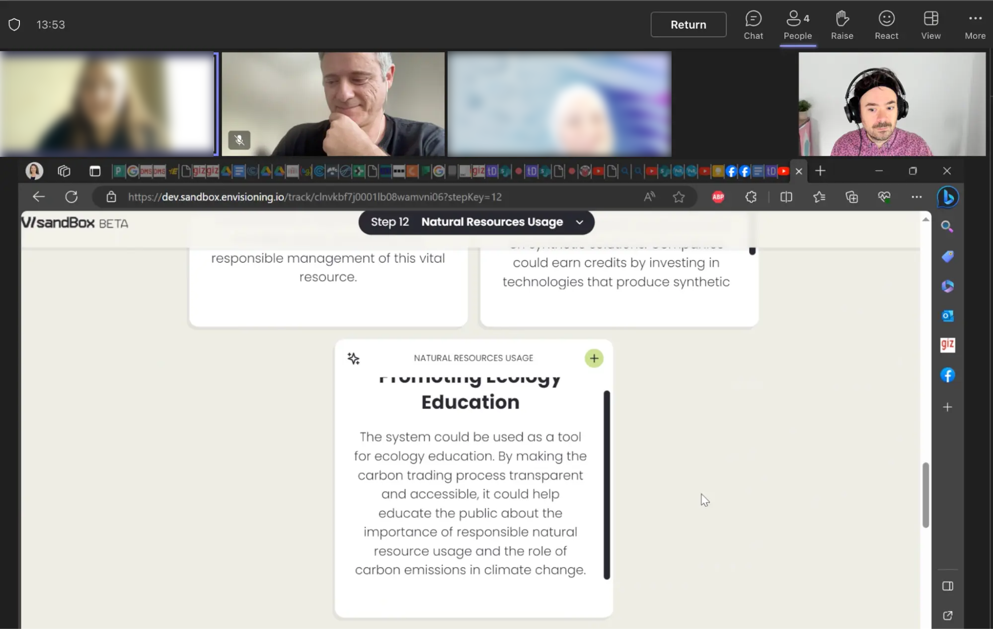 Artificial Intelligence is here to stay, and with that, new kinds of human-machine augmentation emerge, which we call Centaur Mindset. We at Envisioning have been working on a platform for creating and hosting AI-enhanced workshops. With this co-pilot tool, our goal is to augment workshop intelligence and expand the limits of creativity. Recently, we had the opportunity to test out this platform with our partner, GIZ, the main German sustainable development agency, with whom we have launched the GIZ techDetector platform.