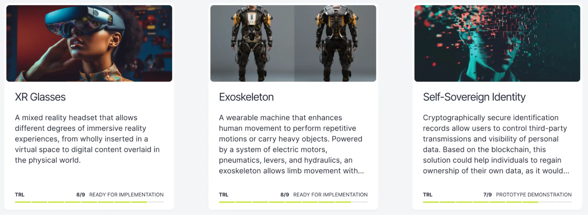 When we first get a brief or idea for a project, we are usually talking about emerging technologies and the future of an industry or area. The first thing we do is comb through our database for technologies that could be important for the client. This allows us to get a mix of cross-cutting and specific entries, which we later validate at the granularity level and TRL (Technology Readiness Level) we are aiming for.