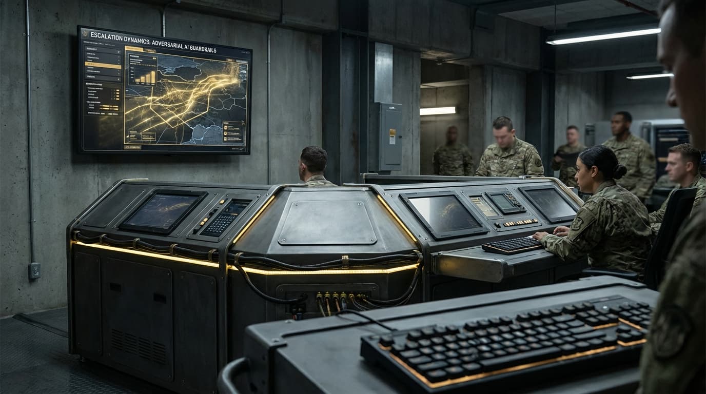 In defense and security contexts, automated decision systems increasingly operate at machine speed, making critical judgments in timeframes far shorter than human reaction times. Escalation dynamics refers to the frameworks, protocols, and technical safeguards designed to prevent automated systems from inadvertently triggering conflict escalation when interacting with adversarial AI. These guardrails function through multiple layers of constraint: hard-coded decision boundaries that prevent certain actions without human authorization, anomaly detection systems that flag unexpected adversarial behavior, and circuit breakers that pause automated responses when predefined risk thresholds are exceeded. The technical architecture typically incorporates confidence scoring mechanisms that assess the reliability of threat assessments, temporal delays that create windows for human intervention, and fail-safe protocols that default to defensive rather than offensive postures when facing ambiguous situations. This becomes particularly critical as military systems, cyber defense platforms, and strategic warning networks incorporate AI components that must distinguish between genuine threats, false positives, and deliberate adversarial probing designed to trigger overreaction.