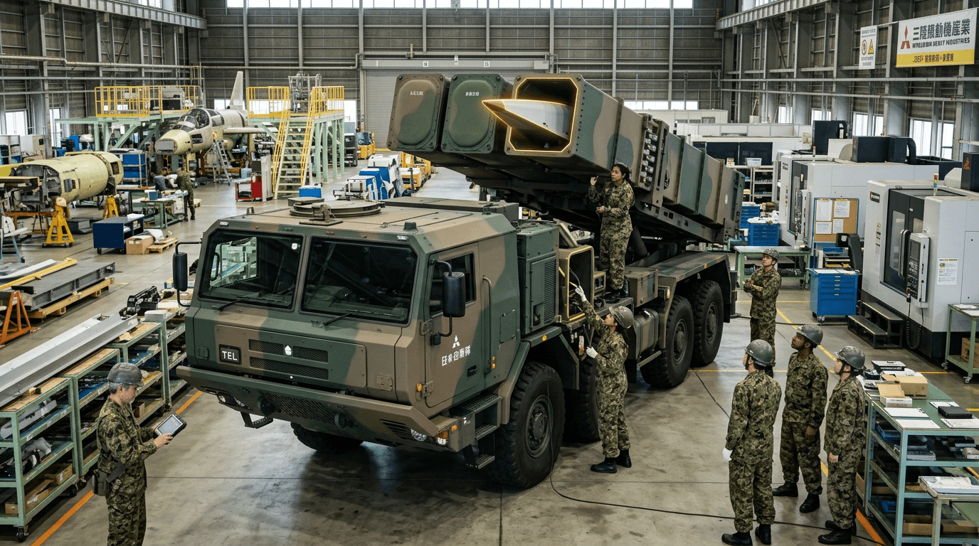 Japan's Ministry of Defense announced mass production of hypersonic guided missiles beginning FY2026, with Mitsubishi Heavy Industries leading production of the Block 1 ground-launched variant. These missiles fly at Mach 5+ (over 6,000 km/h), making them extremely difficult to intercept with current missile defense systems. The program is complemented by upgraded Type 12 surface-to-ship missiles with extended range for air-launched deployment from F-2 fighters by FY2027.