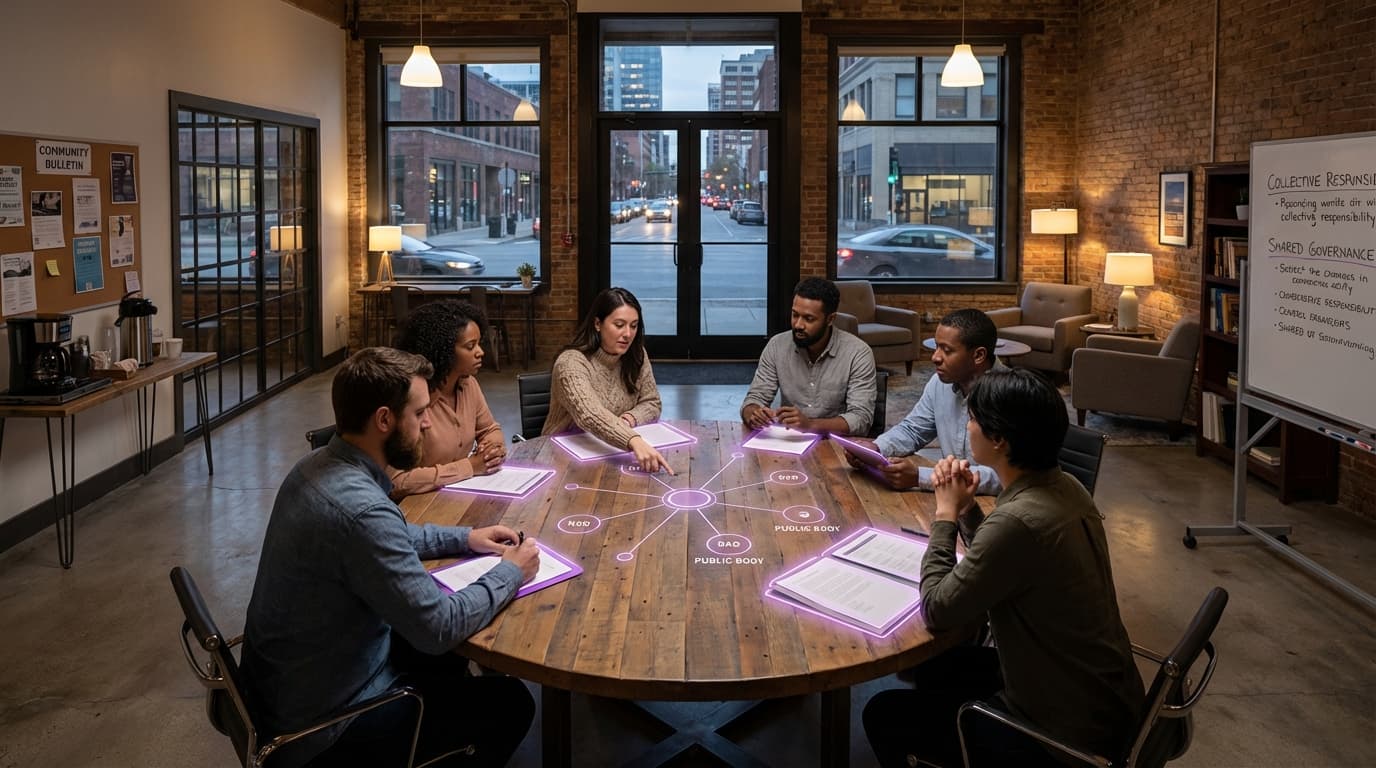 The emergence of these hybrid forms addresses critical limitations in existing organizational models that struggle to tackle complex, multi-stakeholder challenges. Traditional NGOs, while mission-driven, often face constraints in transparency, stakeholder participation, and sustainable funding models. Government bodies provide legitimacy and public accountability but can be slow to innovate and limited by jurisdictional boundaries. DAOs offer unprecedented transparency and distributed decision-making but frequently lack legal recognition, regulatory compliance frameworks, and mechanisms for interfacing with traditional institutions. By combining these elements, cross-sector hybrids attempt to capture the strengths of each model while mitigating their weaknesses. For instance, a hybrid organization might use DAO mechanisms to enable global community participation in funding decisions while maintaining NGO status for tax-deductible donations and partnering with municipal governments to implement programs. This approach enables new forms of public-private-commons collaboration, where resources can flow between sectors more fluidly and accountability can be distributed across multiple stakeholder groups rather than concentrated in a single governance body.