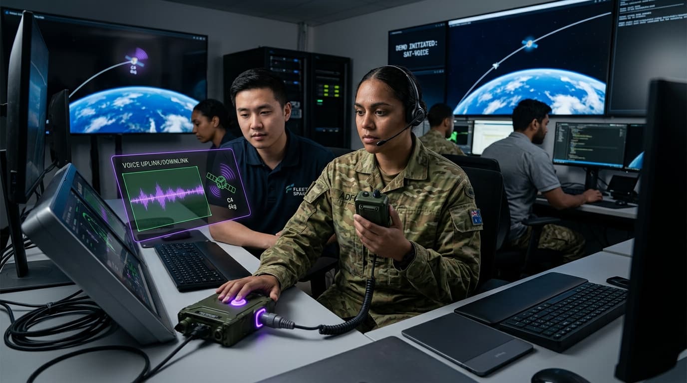 Fleet Space Technologies demonstrated satellite-enabled Push-to-Talk (PTT) voice communications for the Australian Defence Force's ASCEND2LEO program using its Centauri-4 satellite — at 6kg, the world's smallest known satellite capable of voice relay. The demonstration proved that nano-satellites could provide tactical communications capability in areas without terrestrial network coverage, relevant for both military operations and remote civilian applications across Australia's vast interior.