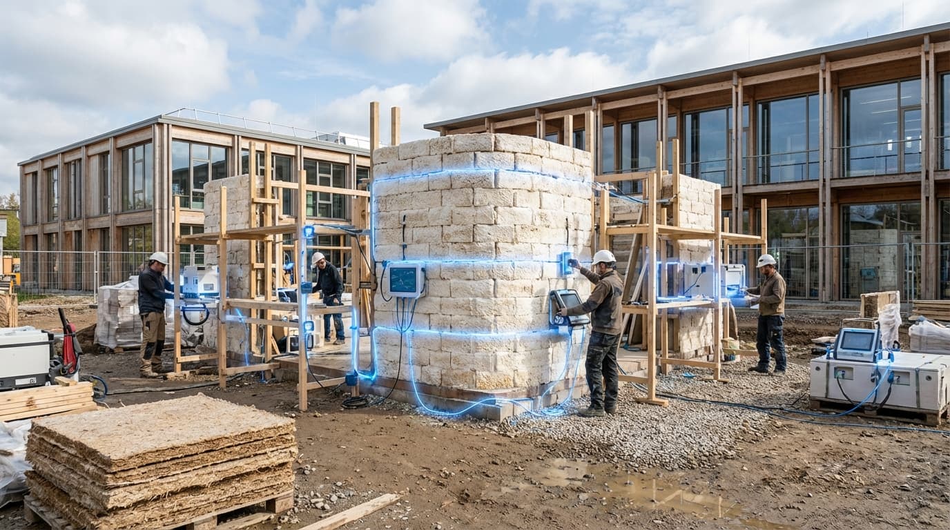 A biomanufacturing company using mycelium for construction, researching the thermal and acoustic sensing properties of their materials.