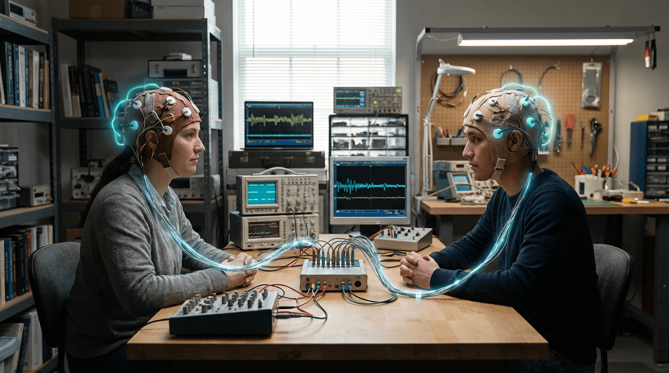 Brain-to-brain communication systems are experimental interfaces that allow the direct transmission of information (simple messages, motor commands, or sensory experiences) from one person's brain to another's via internet-mediated links that connect brain-computer interfaces (BCIs) that read from one brain to computer-brain interfaces (CBIs) that write to another brain, creating a direct communication pathway between nervous systems that bypasses traditional sensory and motor channels. These systems enable 'synthetic telepathy' where thoughts or intentions can be transmitted directly between brains, potentially enabling new forms of communication, collaboration, or even shared experiences, though current systems are limited to simple information transfer and remain largely experimental.