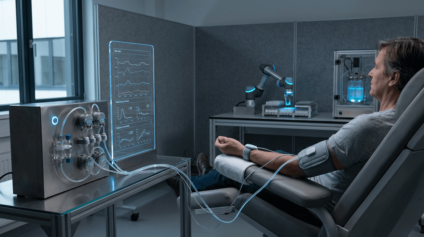 Closed-loop metabolic therapies represent an evolution of automated medical systems that continuously monitor and regulate key metabolic parameters to maintain optimal physiological states associated with youth and health. Unlike traditional treatment approaches that rely on periodic measurements and manual interventions, these platforms integrate real-time biosensing with algorithmic decision-making and automated drug delivery. The technology builds upon decades of research in artificial pancreas systems for diabetes management, extending the concept beyond glucose control to encompass a broader spectrum of metabolic markers including lipid profiles, hormone levels, inflammatory markers, and indicators of mitochondrial function. Advanced sensor arrays track these parameters continuously, feeding data into sophisticated algorithms that calculate precise dosing regimens for multiple therapeutic agents. These may include insulin for glucose regulation, GLP-1 receptor agonists for metabolic optimization, NAD+ precursors for mitochondrial support, and other compounds targeting specific pathways of metabolic aging. The system operates autonomously, adjusting interventions in response to physiological changes, dietary intake, physical activity, and circadian rhythms.
