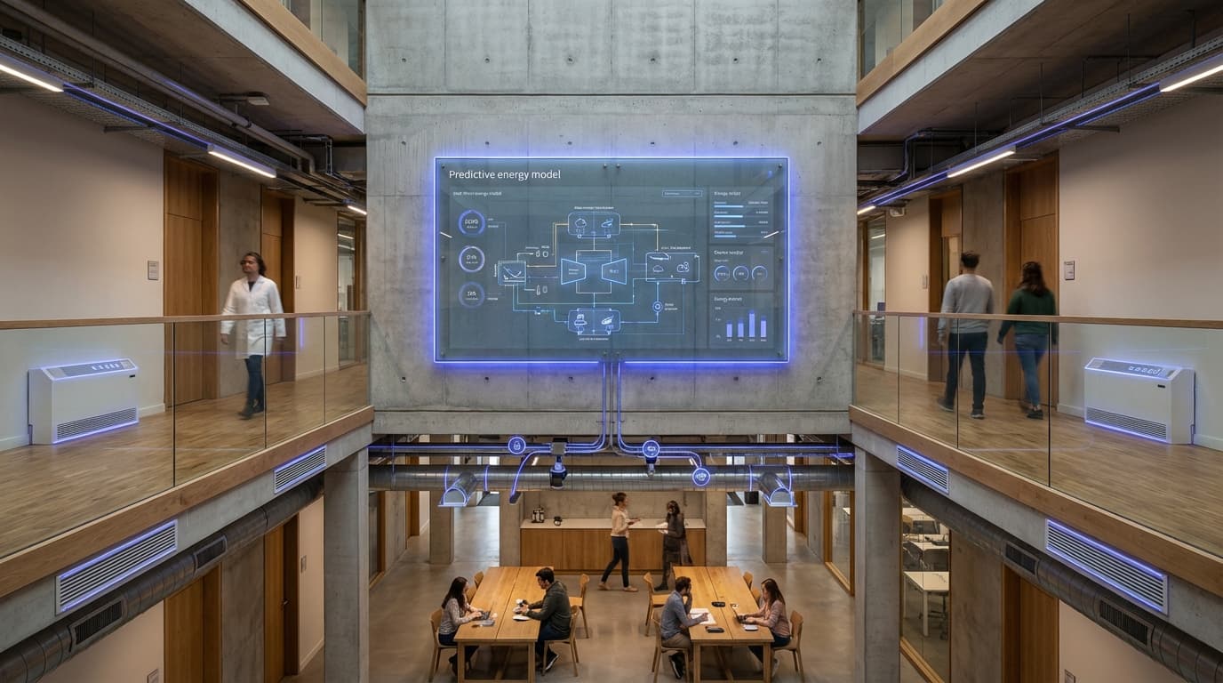 Smart building platform combining IoT sensors with AI to measure occupancy, air quality, and energy efficiency.
