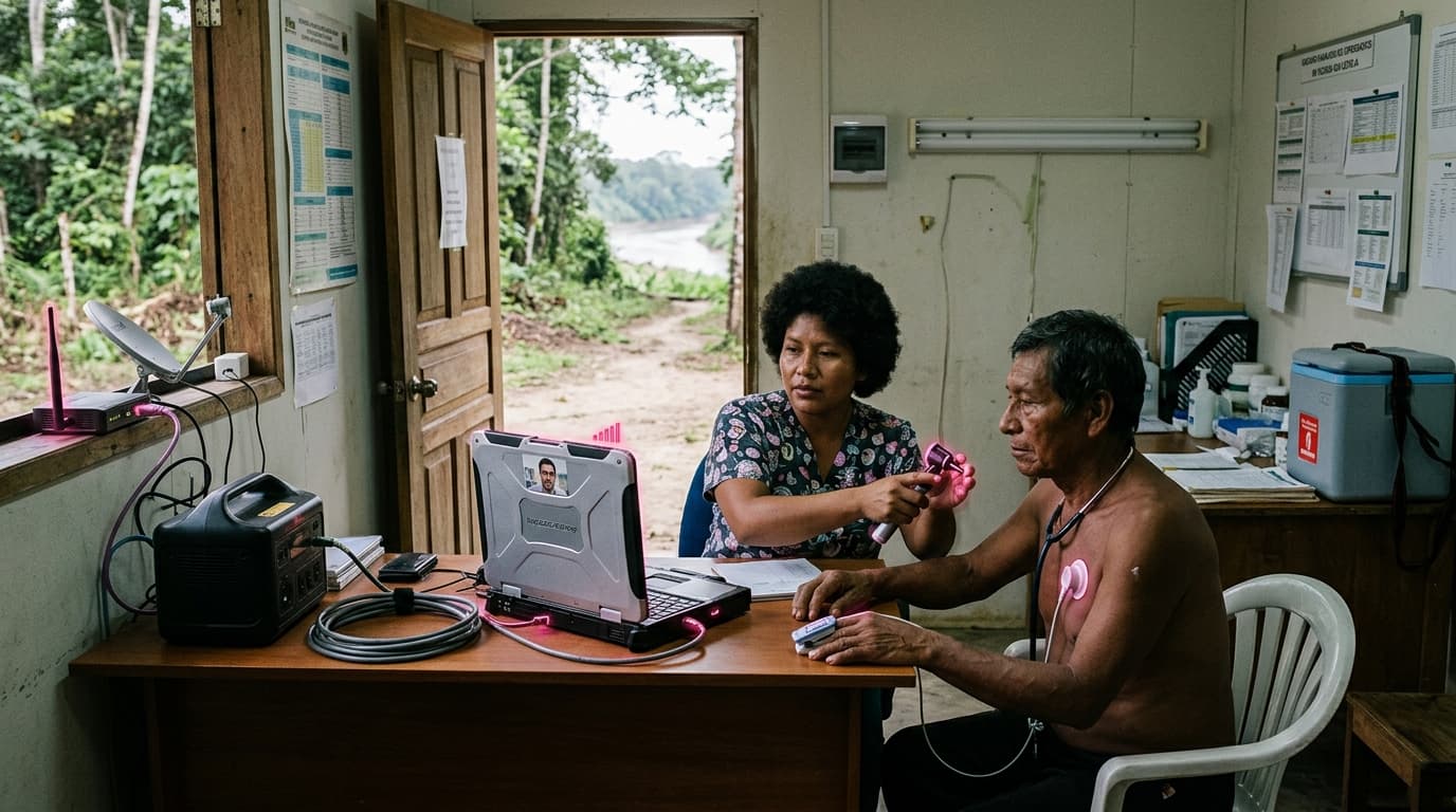 The technology adapts to extreme connectivity constraints: store-and-forward systems capture patient images and vital signs during brief satellite windows, compressed video protocols maintain diagnostic-quality consultations over low-bandwidth connections, and offline-capable mobile apps allow community health workers to collect patient data without real-time connectivity. Integration with Colombia's national health system (EPS) enables billing and medical record management.