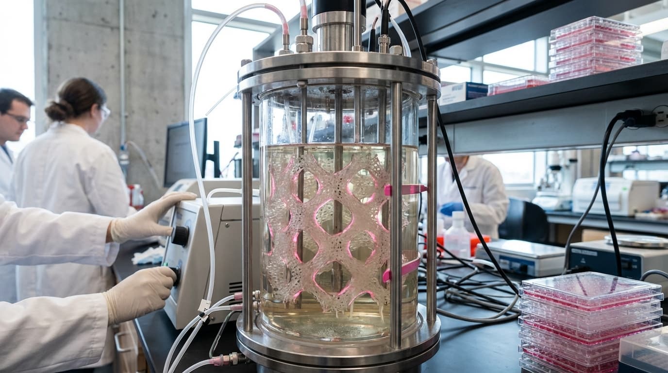 A biotech company growing personalized bone and cartilage grafts using patient stem cells seeded onto 3D scaffolds.