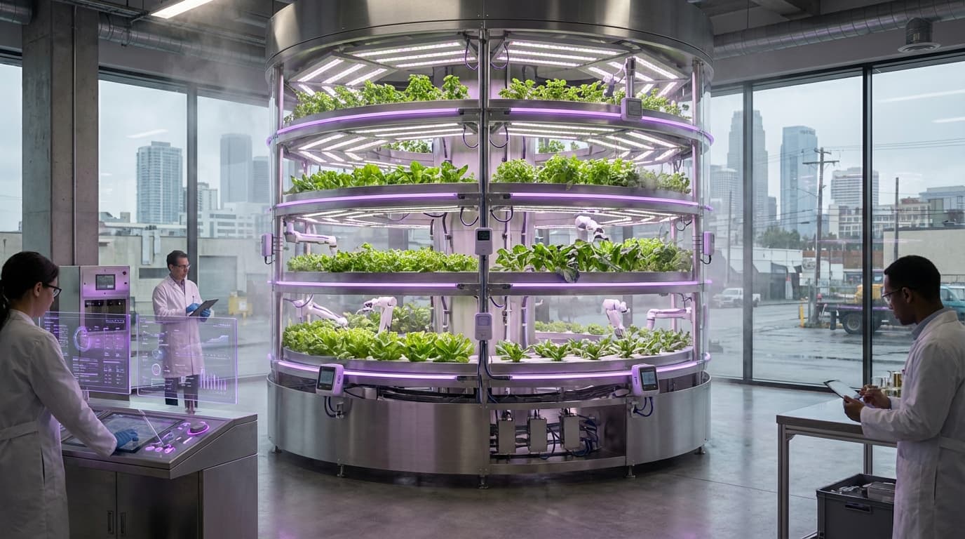 A vertical farming company aiming to grow protein-rich crops (soy/wheat) indoors.