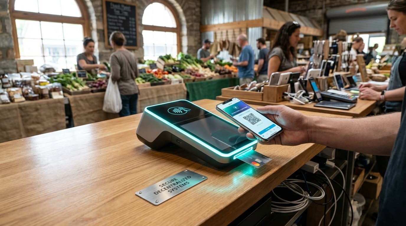 Crypto-enabled payment terminals are retail-grade point-of-sale (POS) systems that ship with embedded cryptocurrency wallets, on-device compliance checks (verifying transactions meet regulatory requirements), and native connectivity to cryptocurrency payment networks including the Lightning Network (a layer-2 solution for fast Bitcoin payments) or stablecoin payment rails (networks for stable cryptocurrency payments), letting merchants accept digital assets alongside traditional credit and debit cards without requiring extra hardware or separate systems. These integrated terminals enable seamless cryptocurrency acceptance at retail locations, making it as easy for merchants to accept crypto payments as traditional card payments.
