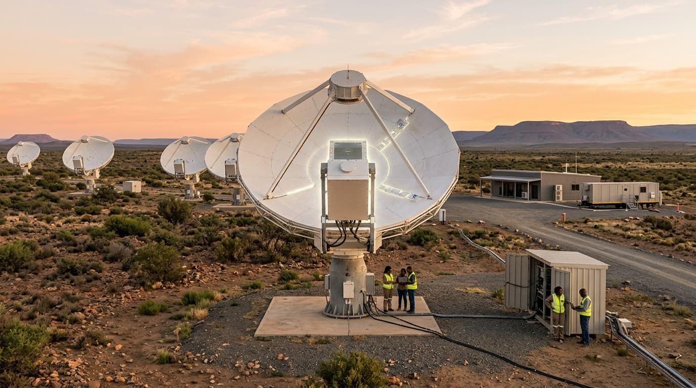 The Square Kilometre Array Mid-frequency telescope (SKA-Mid) is being built in South Africa's Karoo region, forming one half of the world's largest radio telescope (the other half, SKA-Low, is in Australia). When complete, SKA-Mid will deploy 197 dish antennas, each 15 meters in diameter, achieving sensitivity 50 times greater than any existing radio telescope. In 2025, SKA-Mid achieved 'first fringes' — successfully correlating signals between two dishes, a critical construction milestone.