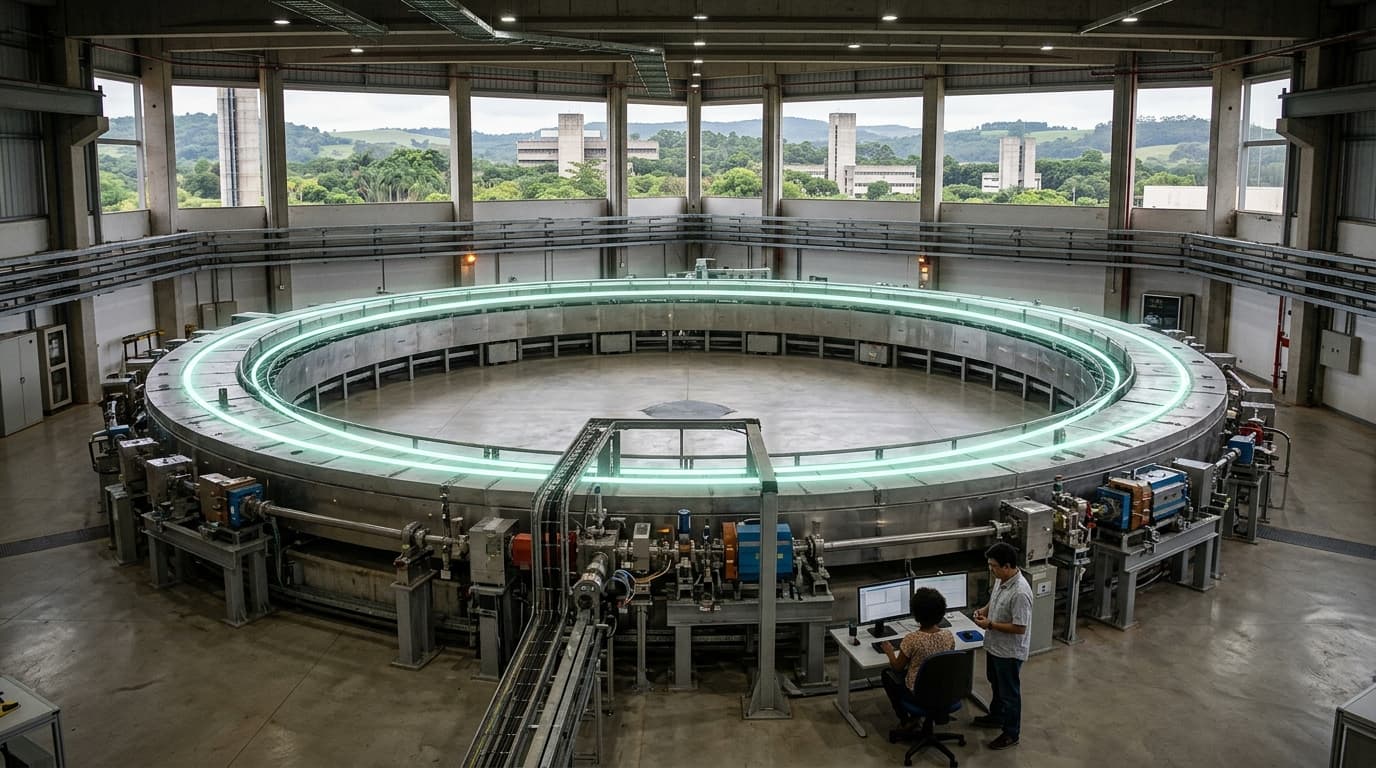 Sirius, located at CNPEM in Campinas (São Paulo), accelerates electrons to nearly the speed of light and uses the resulting synchrotron radiation to image materials at atomic scale. With an emittance of 250 pm·rad, it's among the brightest X-ray sources on Earth.