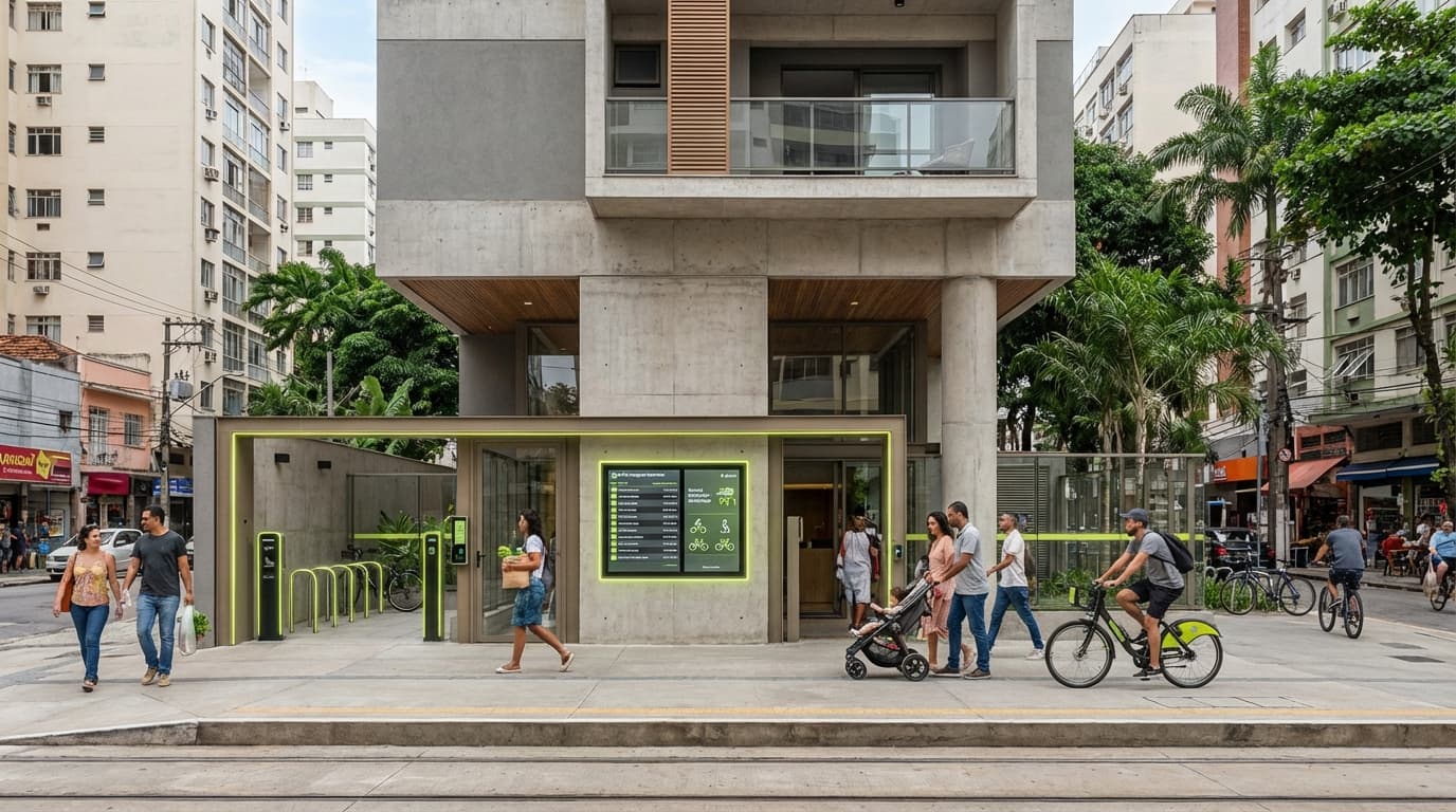 Edifícios sem estacionamento ou com poucas vagas representam uma mudança paradigmática no planejamento urbano brasileiro, onde tradicionalmente há exigências mínimas de vagas por unidade. Esses projetos priorizam localização próxima a transporte público, mobilidade ativa (bicicletas, caminhada) e uso mais eficiente do solo, reduzindo custos de construção, pegada de carbono e dependência de veículos. Projetos residenciais que eliminam ou minimizam estacionamento, priorizando mobilidade ativa, transporte público e uso do solo.