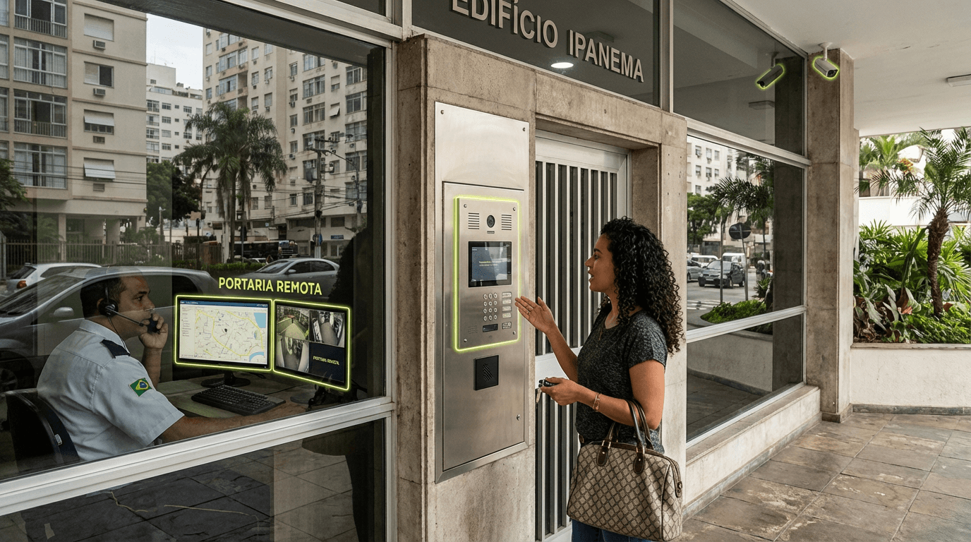 O sinal de mudança é a transformação de modelo operacional baseado em presença física para operações digitais e remotas, criando novos modelos de negócio para segurança predial e mudando a relação entre condomínios e serviços de portaria.