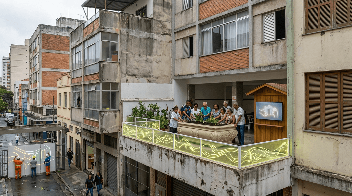 O sinal de mudança é a transformação de habitação de espaço físico para espaço simbólico e emocional, onde qualidade habitacional inclui apropriação emocional e sentido de pertencimento através de rituais e símbolos. Isso impacta políticas habitacionais (reconhecimento de dimensão emocional), qualidade habitacional (criação de pertencimento), identidade comunitária (expressão através de rituais) e cuidado (apropriação emocional), especialmente relevante onde identidade e pertencimento são valorizados e rituais criam apropriação.