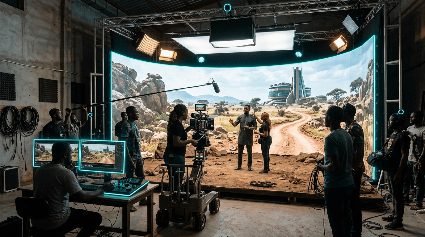 The adoption is driven by economics: Nollywood's average production budget is $25,000-75,000, compared to $100M+ for Hollywood blockbusters. LED volume technology lets a Lagos-based production simulate historical settings, fantasy worlds, or international locations without travel. Real-time rendering engines (Unreal Engine, Unity) run on consumer-grade GPU hardware, making the technology accessible to Nigerian studios. AI tools like runway and local adaptations are being used for rotoscoping, background generation, and even script analysis.