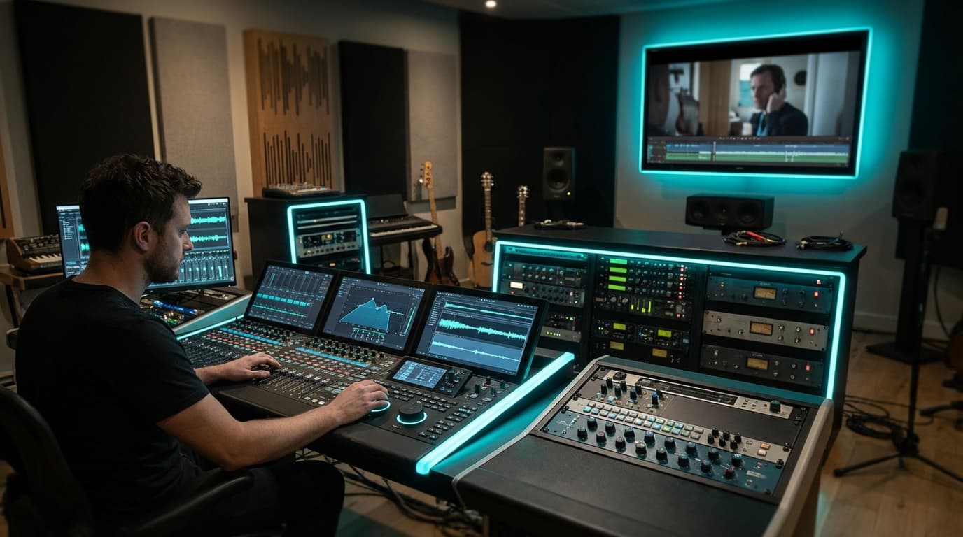 Procedural audio generation suites pair visual scene understanding with diffusion or autoregressive audio models so ambience, Foley, and music can be generated parametrically. They consume metadata such as material tags, camera motion, and emotional arcs, then emit multitrack stems synchronized via SMPTE timecode. Diffusion-based engines like ElevenLabs, Meta AudioCraft, or proprietary studio models bake in room impulse responses so output matches the acoustics of a scene without manual convolution.