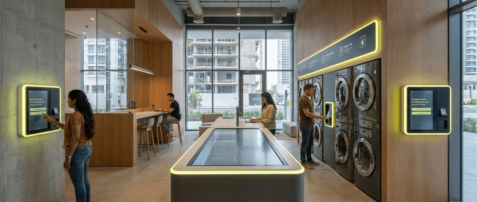 In GCC, this signal appears in compact and rental developments, reconfiguring common areas and opening space for subscription models and partnerships with operators. The technology is being adopted in new housing models like coliving and long-stay, where shared infrastructure is essential for economic viability. Dubai and Abu Dhabi see growing adoption in serviced apartments and coliving spaces.