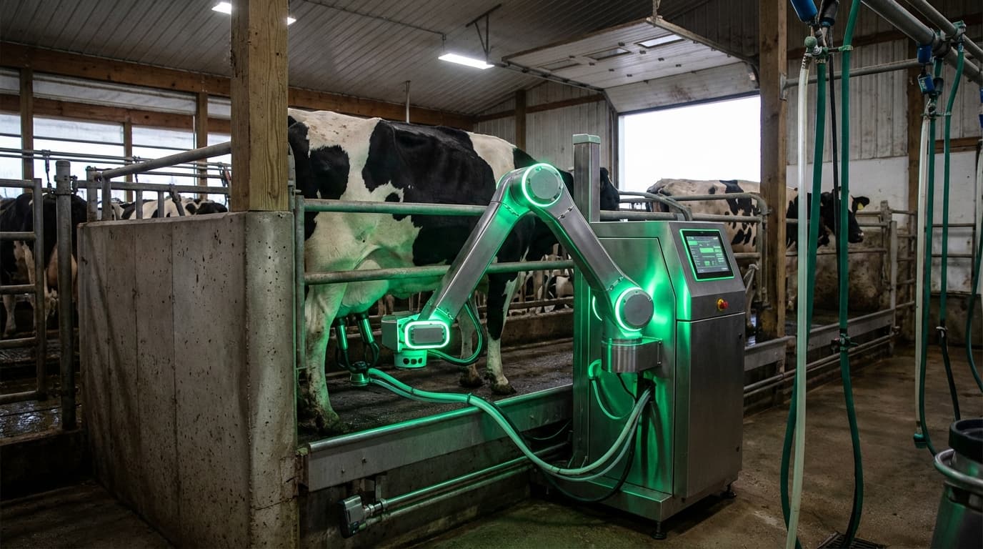 Automated milking systems (AMS) from Lely, DeLaval, and GEA let cows self-select milking times, guiding them into robotic stalls where lasers and stereo cameras align teat cups, clean udders, and monitor milk flow in real time. Inline sensors measure somatic cell counts, conductivity, fat/protein ratios, and ketone levels, feeding herd analytics that suggest ration tweaks or veterinary checks.