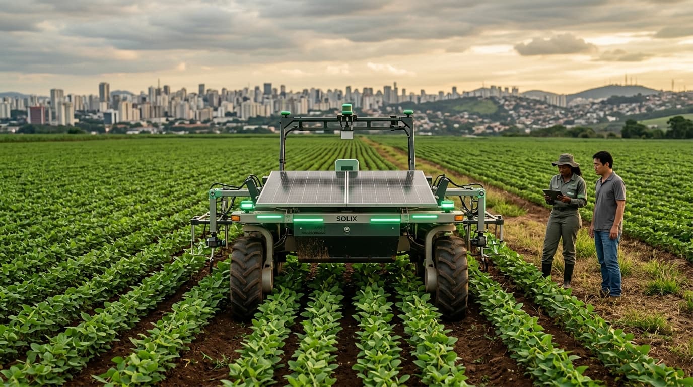 Solinftec, founded in Araçatuba (São Paulo), built Solix as the first autonomous robot designed specifically for large-scale row crop agriculture. The robot navigates fields using GPS and computer vision, monitoring plant health, detecting pests and diseases, and performing targeted interventions without human operators.