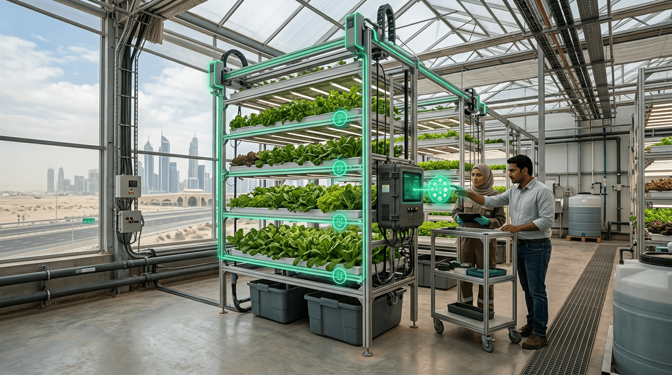 GCC countries import approximately 85% of their food, creating a strategic vulnerability that governments are addressing through controlled-environment agriculture. Companies like Pure Harvest Smart Farms and Alesca Life, both backed by Gulf sovereign investment, operate large-scale vertical farms and greenhouse complexes that produce fresh produce year-round despite external temperatures exceeding 50°C.