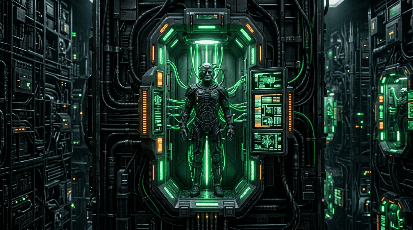 The Borg regeneration alcove represents a fictional integration of biological maintenance, cybernetic recharging, and networked consciousness that appears throughout the Star Trek universe. In the narrative, these vertical docking stations serve as essential infrastructure for maintaining the Borg Collective's drone workforce. The alcove concept imagines a system where assimilated beings—part organic, part machine—interface with a larger network while simultaneously addressing the fundamental biological need for rest and the technological requirement for power replenishment. The device functions as both a charging station and a neural interface port, maintaining the drone's connection to the hive mind even during low-activity periods. This fictional technology explores questions about the nature of rest, consciousness, and identity when biological beings become integrated with machine systems that never truly sleep.