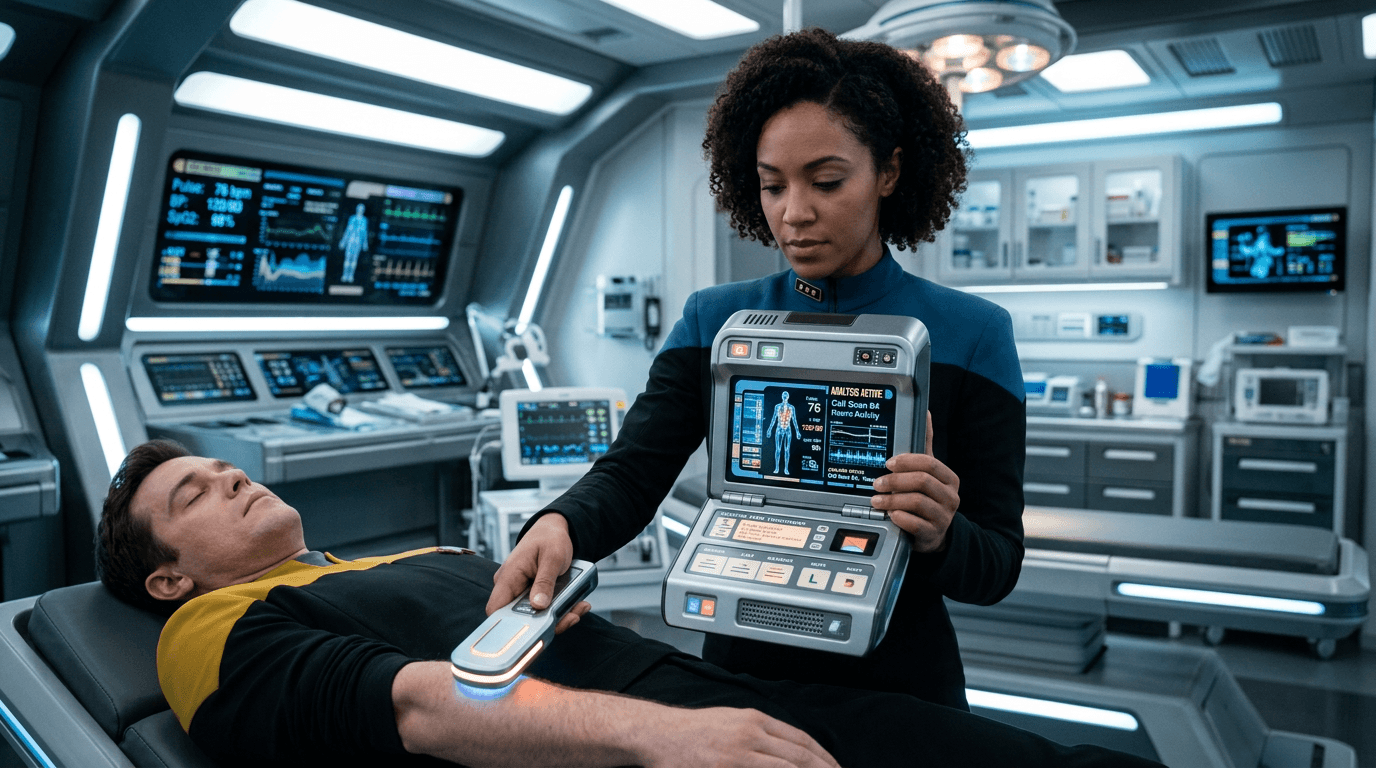 The medical tricorder represents a convergence of multiple diagnostic technologies into a single handheld device capable of performing comprehensive biological analysis without invasive procedures. In its most ambitious fictional form—popularized by Star Trek—the device combines biosensors, molecular scanners, and computational analysis to detect everything from viral infections to internal injuries within seconds. The conceptual mechanics involve non-invasive scanning technologies that could theoretically include advanced spectroscopy, electromagnetic field detection, chemical vapor analysis, and possibly quantum sensing to map physiological states at cellular or molecular resolution. While no current device matches this fictional capability, the concept has inspired decades of research into miniaturized diagnostics, with real-world efforts focusing on integrating multiple sensor types—such as pulse oximetry, electrocardiography, and bioimpedance measurement—into increasingly compact form factors. The fundamental challenge lies in achieving comprehensive diagnostic accuracy without direct tissue sampling or imaging equipment that currently requires substantial infrastructure.