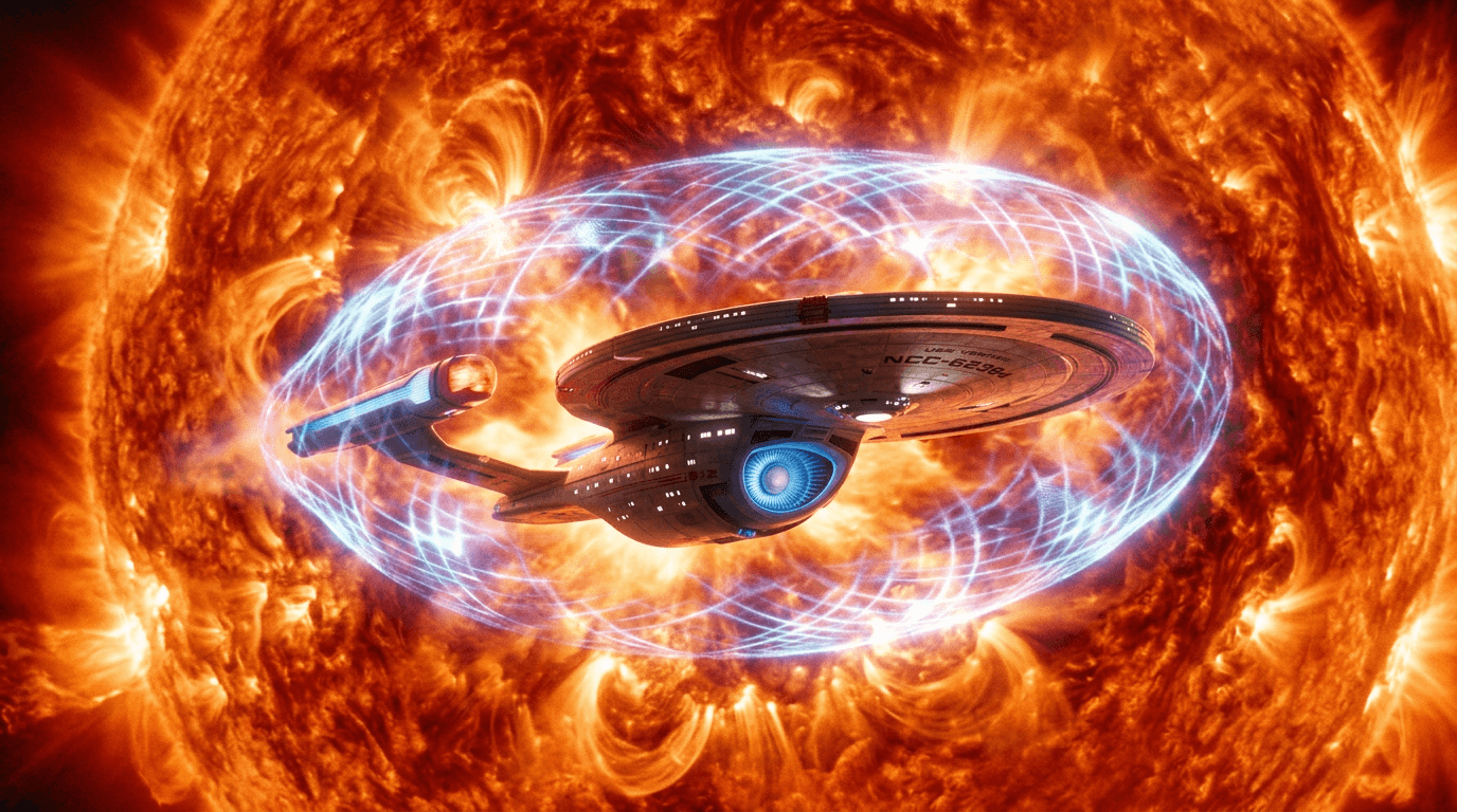 From a plausibility standpoint, metaphasic shielding faces profound physical constraints that current science cannot address. The energy required to actively convert high-energy radiation across the surface area of a spacecraft operating in a stellar corona would likely exceed any conceivable power generation system, creating a thermodynamic paradox where the shielding system itself would generate more heat than it dissipates. Additionally, the quantum-level frequency shifting mechanism lacks any established theoretical framework in contemporary physics—while materials can absorb and re-emit photons at different wavelengths, doing so instantaneously and controllably across the entire electromagnetic spectrum remains unexplained by known principles. Advances in metamaterials, plasma physics, and high-energy field generation might incrementally approach aspects of this concept, but the fundamental energy conversion efficiency required would demand breakthroughs in physics comparable to discovering entirely new force interactions. As a narrative device, metaphasic shields effectively illustrate the extreme environments that future exploration might target while highlighting the immense technological gaps between current capabilities and the fictional technologies required to access them.
