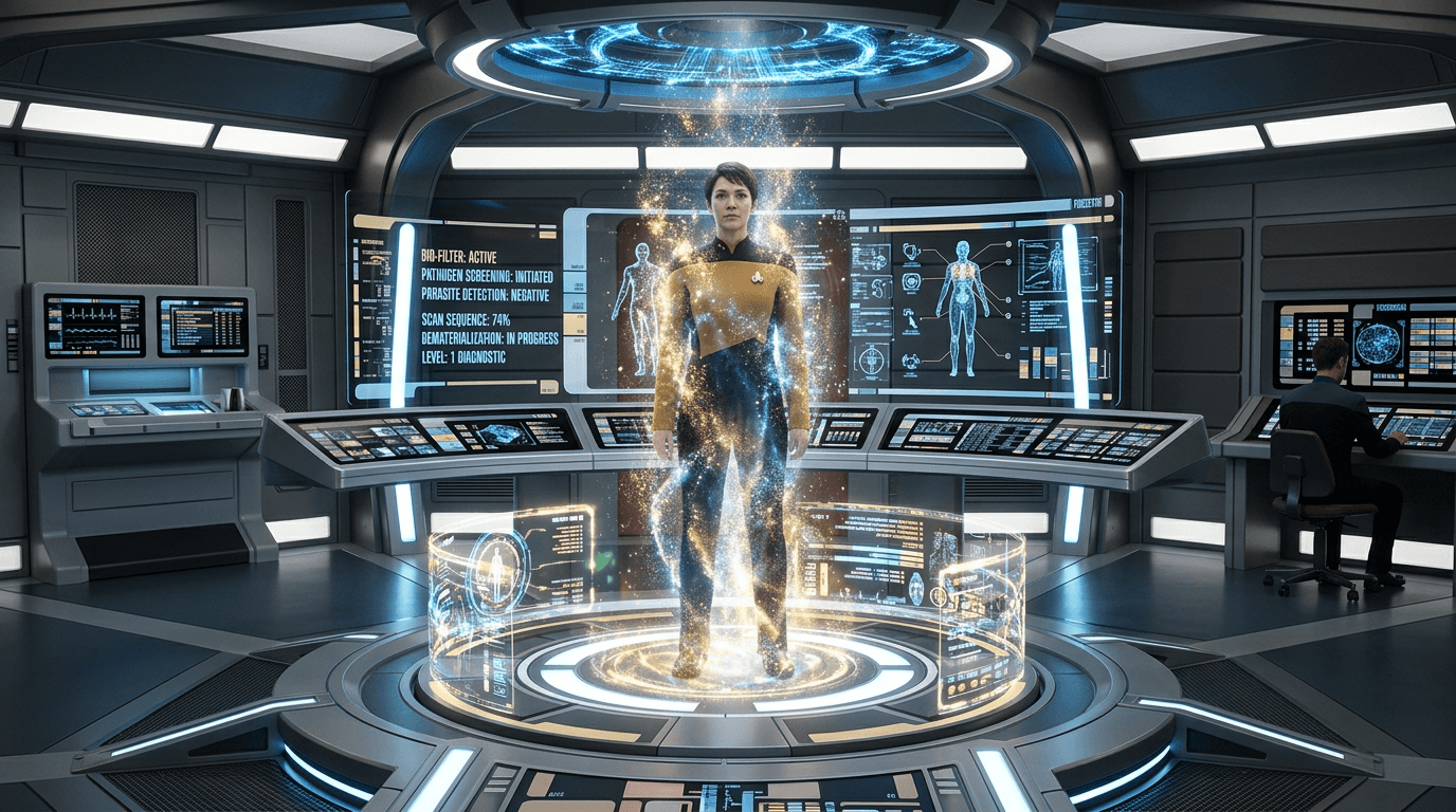 Scientific plausibility is mixed. The underlying components, such as rapid pathogen detection, sequencing-assisted classification, and real-time risk scoring, are credible research areas; full transporter-grade biological filtering remains fictional because it assumes complete and reversible matter-pattern handling beyond current physics and engineering. Even so, the concept is valuable for foresight: it highlights design principles for future high-throughput mobility systems, including layered detection, explainable auto-quarantine decisions, fail-safe defaults, and governance models for what counts as a removable threat versus protected biological variation.