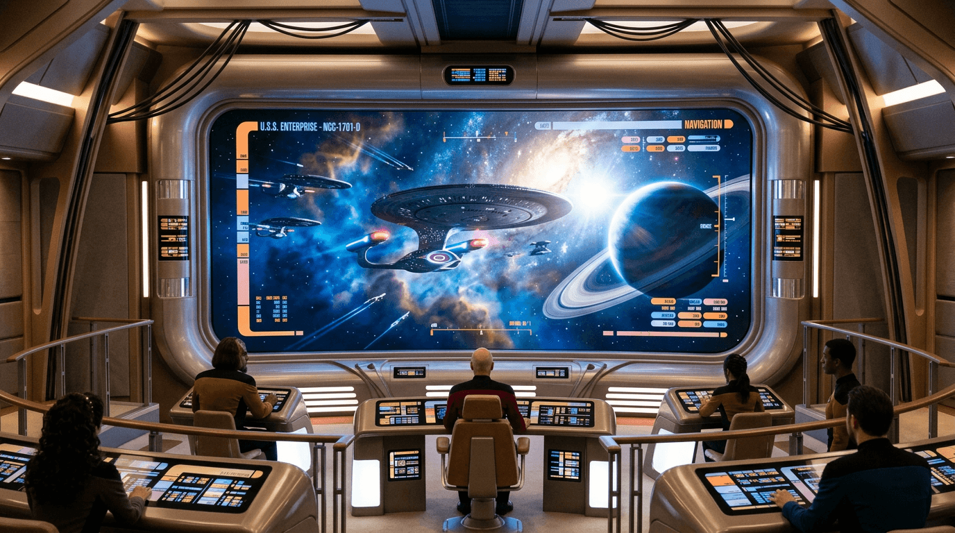 The plausibility of main viewscreen technology depends heavily on which components are emphasized. Current display technology already achieves large-scale, high-resolution visualization, and sensor fusion algorithms successfully integrate multiple data streams in aerospace and naval contexts. The speculative leap occurs in the assumed sensor capabilities—particularly any that would violate known physics, such as faster-than-light detection or perfect resolution at astronomical distances—and in the seamless real-time processing of vast data volumes. Holographic and volumetric display research continues to advance, though practical implementations face constraints in brightness, viewing angles, and power consumption. The concept's evolution toward realization would require breakthroughs in computational efficiency, sensor miniaturization, and display technology, alongside resolution of fundamental physics questions regarding what information can actually be gathered across vast distances in space. As command centers increasingly adopt immersive visualization technologies and AI-assisted data interpretation, elements of the main viewscreen concept gradually transition from pure speculation toward engineered reality, though the more exotic sensor capabilities remain firmly in the realm of narrative imagination.