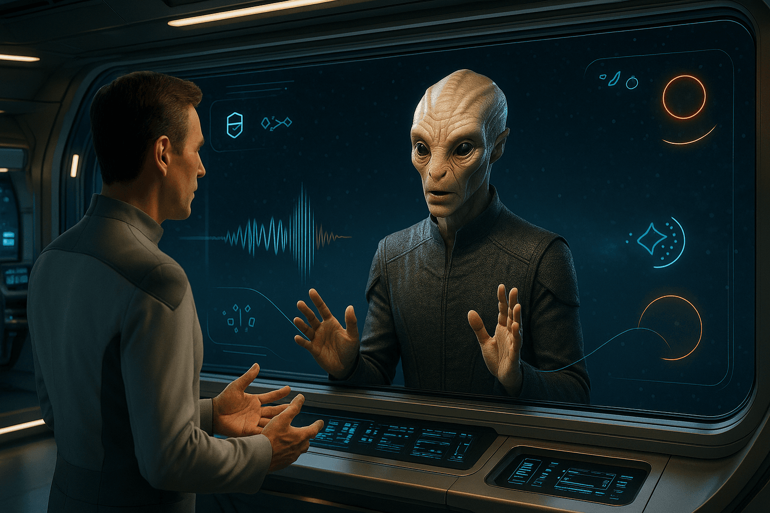 The narrative appeal of face-to-face interstellar communication lies in its dramatic potential and its reflection of contemporary communication preferences. In diplomatic scenarios, first contact situations, or crisis negotiations depicted in science fiction, the ability to observe an alien ambassador's body language or a distant commander's facial reactions adds layers of meaning that pure audio transmission cannot convey. This technology serves as a storytelling device that preserves the intimacy and nuance of in-person dialogue while operating across cosmic distances, allowing writers to explore interpersonal dynamics without the delays that realistic physics would impose. The inclusion of features like automatic translation overlays and priority channels reflects real-world concerns about secure communications and language barriers, transplanted into an interstellar context where cultural differences might be far more profound than anything encountered on Earth.