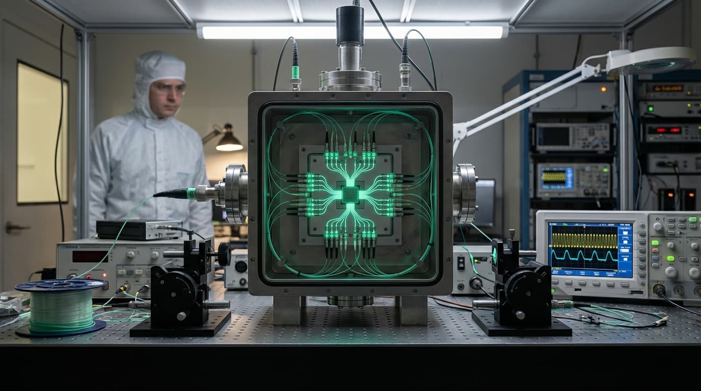 Integrated photonic quantum chips are compact quantum processors built on photonic integrated circuits (similar to electronic integrated circuits but using light instead of electricity) that integrate optical components including waveguides (channels that guide light), beam splitters (devices that split light beams), and detectors (devices that detect photons) onto a single substrate (chip), enabling scalable quantum processing. They offer the distinct advantage of potentially operating at room temperature (unlike many quantum systems that require extreme cooling) and are naturally compatible with fiber-optic quantum communication networks (existing fiber optic infrastructure), making them ideal for distributed quantum computing where quantum processors in different locations are connected via optical fibers, enabling quantum networks that span large distances.