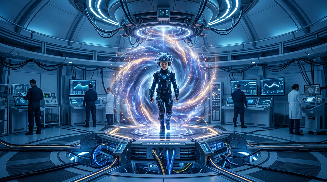 Reported program characteristics include: recruitment from government families or special schools; exposure to 'Jump Room' or portal-based teleportation systems; training in temporal navigation using quantum access technologies; holographic time window interfaces displaying past/future events; and alleged preparation missions visiting historical/future locations including Mars surface and remote time periods.