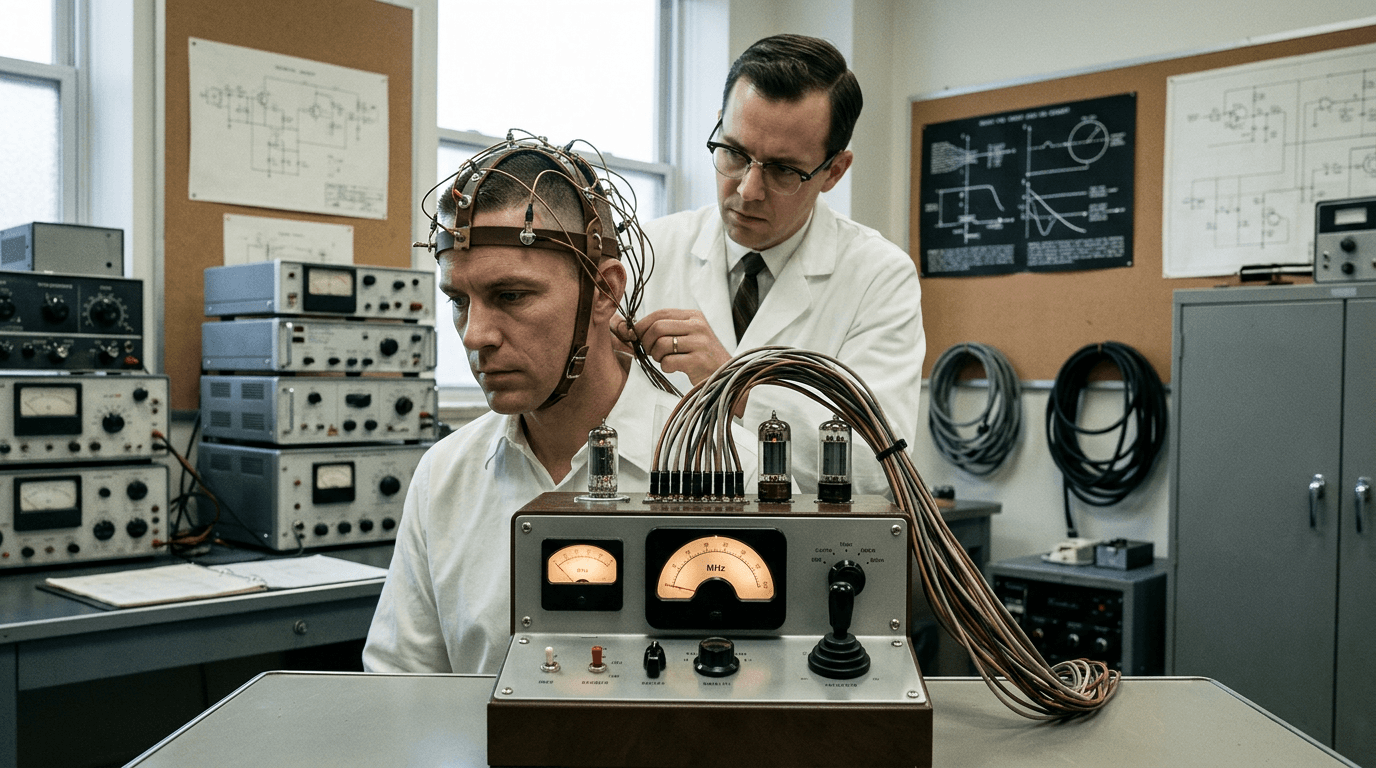 Delgado's 'stimoceiver' combined miniaturized electrode arrays with implanted radio receivers, enabling external operators to trigger precise neural stimulation patterns remotely. The device featured: surgically implanted electrodes targeting specific brain regions (amygdala for aggression, motor cortex for movement control, pleasure centers for reward conditioning); miniaturized analog-to-radio converters translating RF signals into neural stimulation pulses; ultra-high frequency telemetry systems (specific frequencies classified but likely VHF/UHF bands); and external control units allowing operators to trigger preprogrammed stimulation sequences. Successful demonstrations included: stopping charging bulls mid-attack; inducing specific motor movements in cats and primates; modulating aggression levels in monkeys; and creating conditioned behavioral responses through remote reward/punishment.